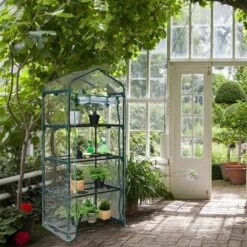 - Middle rails provide additional stability for this greenhouse