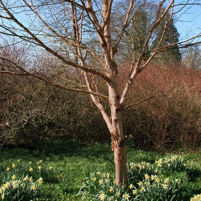 River Birch is vigorous, fast-growing, medium-sized, deciduous birch that is very adaptable to various soil conditions. Grows unique salmon-pink to reddish brown bark that exfoliates to reveal lighter inner bark. Its leaves are medium to dark green, diamond-shaped and turn yellow in the fall. Deer, drought and air pollution tolerant. A gorgeous specimen tree that is ideal to plant in an area where the soil stays wet and nothing else will grow.