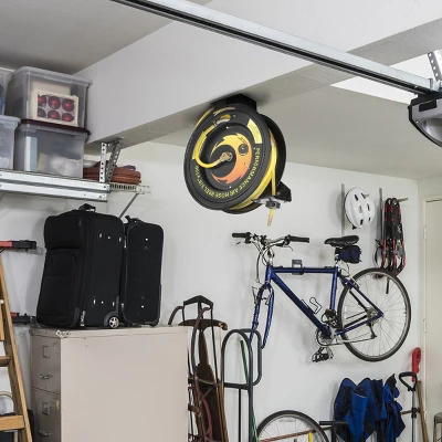 Conduct auto repairs with ease with the Fleming Supply Retractable Rubber Air Hose Reel. An automatic hose rewind feature helps prevent binding, and the adjustable stop ensures you utilize the perfect amount of hose for various projects. The reel comes with a multi-position ratchet lock for versatile use, and four non-snag rollers help prevent wear and tear.