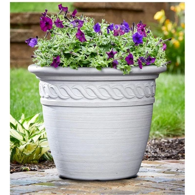 - 20″ diameter planter is 15″ H, holds 30 quarts of potting soil