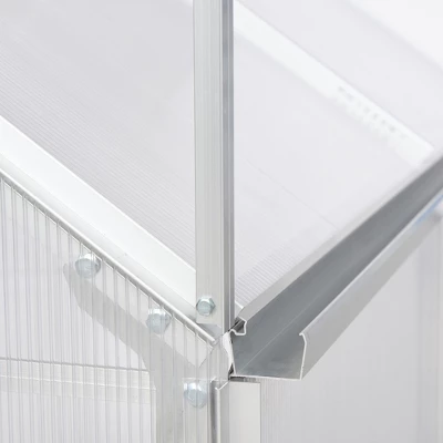 Outsunny Polycarbonate Greenhouse With Aluminum Frame, Walk-in Garden Greenhouse Kit With Adjustable Roof Vent, Rain Gutter And Sliding Door For Winter, Silver