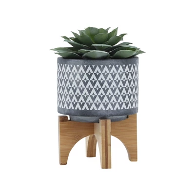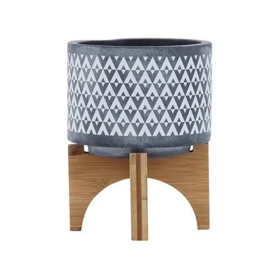 Sagebrook Home With Wooden Stand Aztec Ceramic Planter Pots Gray