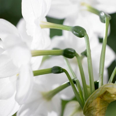Timeless beauty, sweet perfume, and absolute dependability have made Paperwhites Narcissus the absolute all-time favorite Narcissus bulb for indoor forcing in winter. Clusters of pure white blooms will come 4-6 weeks after potting. Very easy to grow, no special handling or treatment required. This Paperwhite kit comes with everything you need to grow these exotics: Four bulbs, a 5″ x 6.5″ metal sink like, white striped chalk outer planter, a 5″ nursery pot, planting medium, and a set of growing instructions. As bulbs are essentially storage mechanisms, they already contain everything needed to produce flowers.