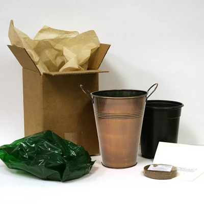 These purple shamrocks (Oxalis Triangularis) are often called The Good Luck Plant, due to their four clovers. They are easy and fun to grow, and their striking, purple foliage really sets them apart. Our Oxalis kit comes with everything you need to grow this exotic plant: six Oxalis bulbs, a 5″ x 7″ trendy, antique, copper-like, decorative outer planter, a 5″ nursery pot, planting medium and a set of growing instructions. As bulbs are essentially storage mechanisms, they already contain everything needed to produce flowers. All you will need to do is water.
